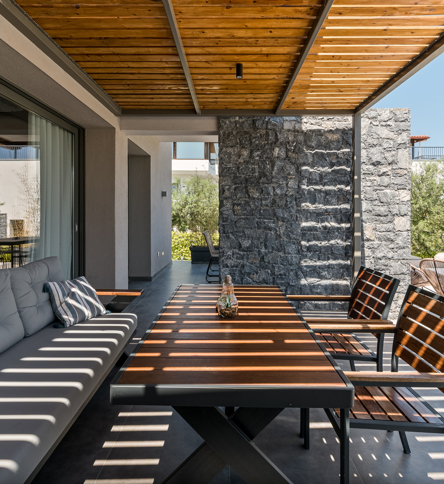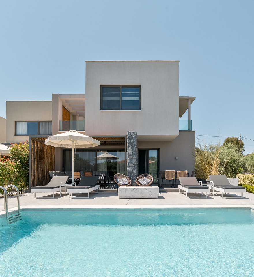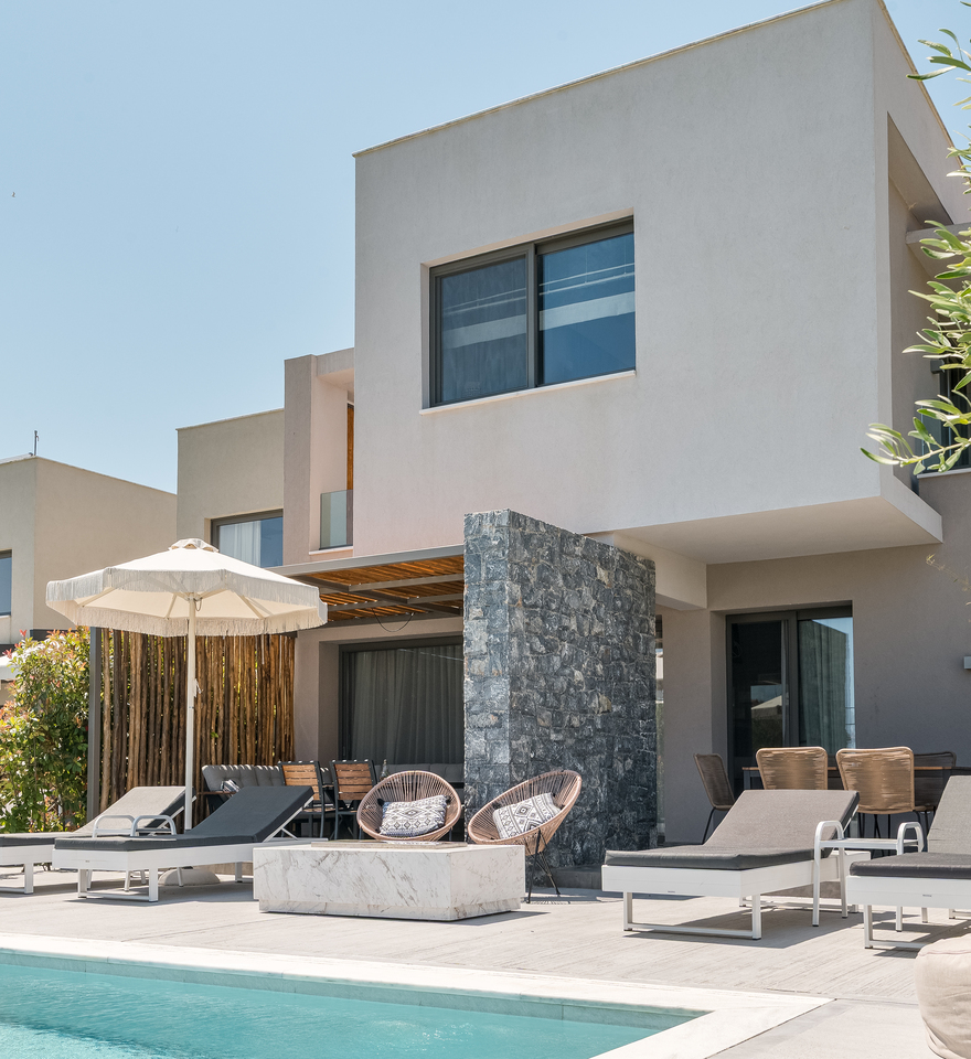 As you enter our complex, on the left side you will see Villa Olivia. This individually designed villa includes 3 levels, it is 100m2 space and can accommodate up to 8 people.